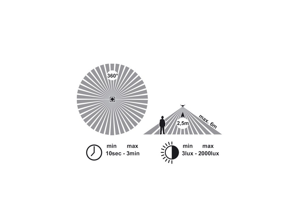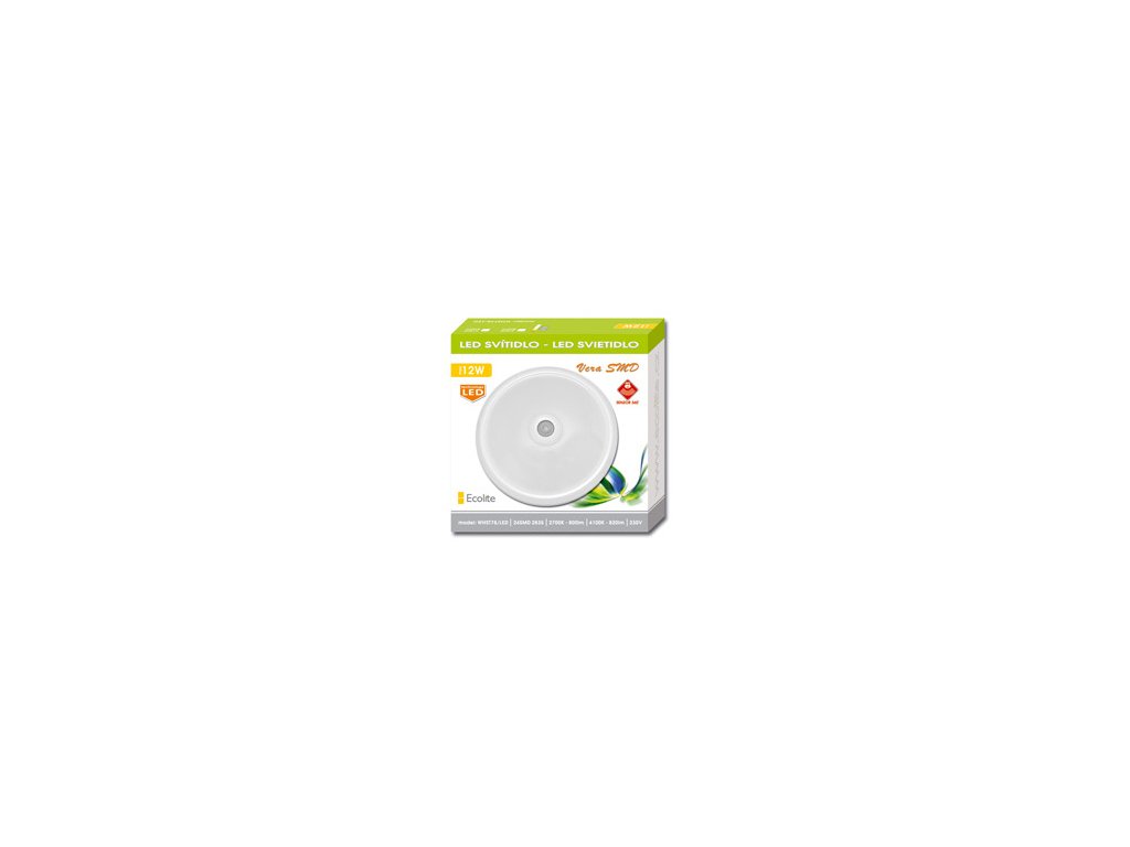 Tabuľka hodnôt: Rozmery - ⌀ 29 x 6,7cm# Vstupné napätie [V] - 220-240# Max.výkon [W] - 12# Pohybový senzor - áno# Dosah / uhol pokrytia - 6m / 360°# Doba zopnutia - 10s-3min# Citlivosť - 3-2000 lx# Farba svetla - teplá biela# Teplota chromatickosti [K] - 3000# Materiál - plast, kov# Farba produktu - biela# Stupeň krytia IP - 20# Trieda ochrany - I# Index podania farieb [Ra] - 80# Svetelný tok [lm] - 800# Typ zdroja - 24x LED SMD2835# Životnosť [h] - 30000#Dodatočné parametre
