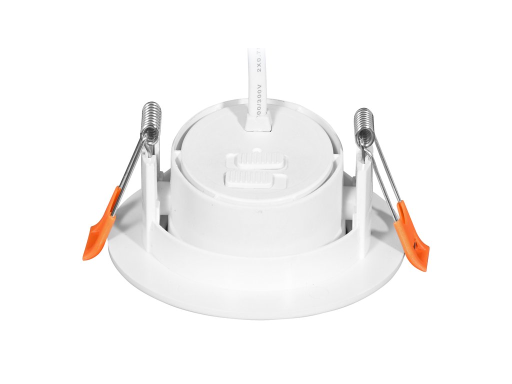 Tabuľka hodnôt: Rozmery - ⌀ 9 x 3 cm# Vstupné napätie [V] - 220-240# Max.výkon [W] - 3/5/7# Farba svetla - teplá biela/biela/studená biela# Teplota chromatickosti [K] - 3000/4000/6000# Materiál - plast, kov# Farba produktu - biela# Stupeň krytia IP - 20# Trieda ochrany - II# Index podania farieb [Ra] - 80# Svetelný tok [lm] - 560# Uhol rozptylu svetla - 40# Životnosť [h] - 30000#Dodatočné parametre